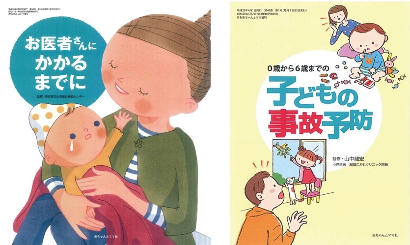 1年目の初回には、『赤ちゃんと!(1回目)』『お誕生号』『お医者さんにかかるまでに』『子どもの事故予防』『パパ育児のトビラ』等セットでのお届けとなります。