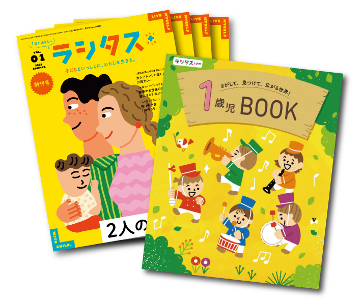 お子様をご出産の家庭へ1年目に月刊誌「赤ちゃんと!」、2年目に季刊誌「ラシタス」(3月、6月、9月、12月の年4回)をお届けします。