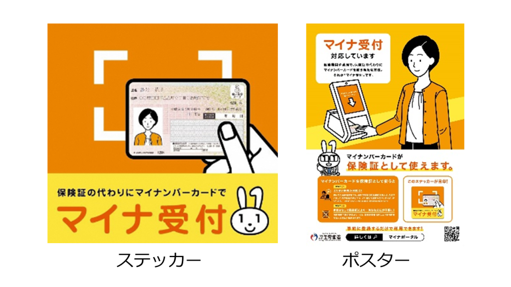 ※マイナンバーカードが健康保険証として利用できるのは、オンライン資格確認システムを導入している医療機関・薬局です。対象医療機関には「マイナ受付」のステッカーやポスターが掲示してあります。確認し、ぜひ一度ご利用ください。