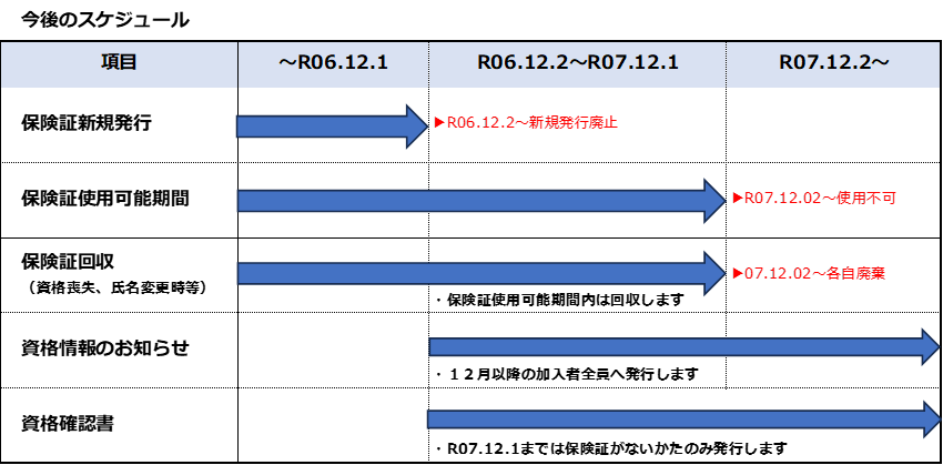 | 現行の健康保険証 | 令和6年12月1日 | 令和7年12月1日 |